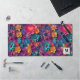 Desk mat with a cool digital 3d style pattern. Bright and colourful flowers with a cool style which looks like paper cutouts. Fun and fanciful design.