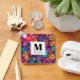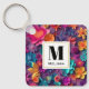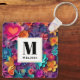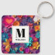A keychain with a cool digital 3d style pattern. Bright and colourful flowers with a cool style which looks like paper cutouts. Fun and fanciful design.