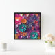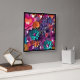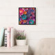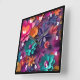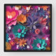 A clock with a cool digital 3d style pattern. Bright and colourful flowers with a cool style which looks like paper cutouts.