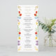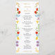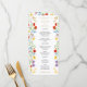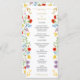 Elegant and colourful floral wedding menu featuring beautiful hand-painted watercolor wildflowers including clover, poppy, forget me not, crocus, daffodil, bluebell and pasque flower with green botanical elements and modern calligraphy font on a white background with gold elements. Perfect for spring or summer rustic country boho wedding. Find more matching wedding items in my Colourful Spring Wildflower Meadow Collection.