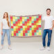 A pattern made up of squares of five different colours which have been arranged in 4x4 tiles. However the 4x4 tiles on the right are reversed and inverted creating a more interesting overall design. This design is created from a full sized vector graphic specifically for this type of blanket. The colour squares at the edges are therefore fully extended into the bleed area ensuring there can be no unwanted pattern edges in the final product.