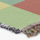 A pattern made up of squares of five different colours which have been arranged in 4x4 tiles. However the 4x4 tiles on the right are reversed and inverted creating a more interesting overall design. This design is created from a full sized vector graphic specifically for this type of blanket. The colour squares at the edges are therefore fully extended into the bleed area ensuring there can be no unwanted pattern edges in the final product.