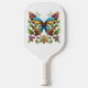 Colourful stained glass butterfly with flowers pickleball paddle