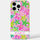 Customize this colourful watercolor starfish in greens and pinks iPhone 15 pro max case with your your name in a trendy modern CAP font in pink on white. It's so modern and trendy!