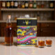 A dynamic pattern features colourful swirls, vibrant stars, and scattered dots against a deep black background.