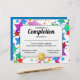 Colourful stars customizable printed Completion Certificate Award customizable for any course or program.  Add your own title and details to this Customizable business or school award certificate Letter size 8.5"x11". Custom design with your high school, kids, middle school, career training, course or seminar.  Show your students, volunteers and staff recognition for great attitude or accomplishment with this customizable, personalized certificate.  Add your own text online, and order certificates custom made for your program. Leave the signature area blank to add a signature later, or type your name and title, and still add your signature above. Honoree's name can be typed in or the blank line can be left to add hand-written or printed names later.