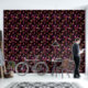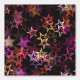 Whimsical red hues and gold stars flecked across a black background