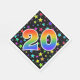 This exciting, fun, and vibrant paper napkin design features numerous colourful star shapes, along with the number "20" featuring a multicolored rainbow inspired spectrum gradient pattern, on a black coloured background. Paper napkins like this might be fun to use at a party when celebrating somebody’s twentieth birthday, or perhaps a couple’s twentieth wedding anniversary, or some other 20th event. [~Z0000346]