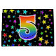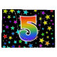 This exciting, fun, and vibrant gift bag design features numerous colourful star shapes, along with the number "5" featuring a multicolored rainbow inspired spectrum gradient pattern, on a black coloured background. A gift bag like this could perhaps be a fun and happy way of wrapping gifts or presents being given for somebody’s fifth birthday, or perhaps for a couple’s fifth wedding anniversary, or some other 5th event. [~Z0000347]