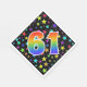 This exciting, fun, and vibrant paper napkin design features a colourful stars pattern, along with the number "61" having a multicolored rainbow inspired spectrum gradient pattern, on a black coloured background. Paper napkins like this might be fun to use at a party being held in honour of somebody’s sixty first birthday, or perhaps a couple’s sixty first wedding anniversary, or some other 61st event. [~Z0000346]