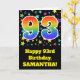 The front of this exciting, fun, and vibrant birthday greeting card design features a colourful stars pattern, along with the number "93" having a multicolored rainbow inspired spectrum gradient pattern, on a black coloured background. The front also features a birthday greeting message, including a customizable recipient name. The inside features a custom birthday greeting message, or could perhaps be cleared and left blank if a message is to be written by hand instead. A custom birthday card like this might be a fun way to send birthday wishes to somebody who is celebrating their ninety third birthday. [~Z0000348]