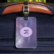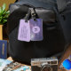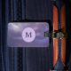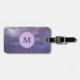 A sky full of purple and pink storm clouds make up the background of this easily customizable monogram luggage tag.