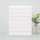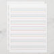 Classical acoustic guitar music sheets that coordinate with nylon rainbow coloured guitar strings. Traditional blank music sheet includes 7 lines for guitar with standard guitar string names listed and space on top for the song title. Colourful strings design includes violet purple, lime green, black, blue, yellow, and red colours. Two-sided printing.