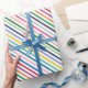 Fun colourful wrapping paper with cute colourful stripes design in light coral, yellow, blue, aqua orange, lime and mint green, violet, purple, pink and red colours. Ornate, funky, modern and whimsical hipster design for the lover of colours. This original, classy, chic, stylish and perfect gift wrap will put a smile on the faces of friends and family when unwrapping their birthday presents.