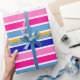 Colourful Stripe Pattern Vivid Birthday Party Wrapping Paper. Modern and vivid, bright design with blue, yellow and pink stripes. Great for a birthday celebration for kids or adults, picnic, Easter,...