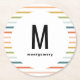 Colourful Stripes Monogrammed Cocktail Round Paper Coaster
