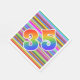 This eye-catching, fun, and exciting paper napkin design features a multicolored stripes pattern, along with the number "35" having a multicolored rainbow inspired gradient pattern. Paper napkins like these might be fun to use at a celebration being held to commemorate somebody’s thirty fifth birthday, or perhaps a couple’s thirty fifth wedding anniversary, or some other 35th event. [~Z0000352]