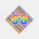 This eye-catching, vibrant, and exciting paper napkin design features a colourful stripes pattern, along with the number "58" having a multicolored rainbow like gradient pattern. Paper napkins like these could be fun to use at a party being held to commemorate somebody’s fifty eighth birthday, or perhaps a couple’s fifty eighth wedding anniversary, or some other 58th event. [~Z0000352]