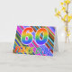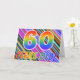 The front of this vibrant, eye-catching, and exciting birthday greeting card design features a colourful pattern of stripes, along with the message "60 years old!" featuring a multicolored rainbow like gradient pattern. The inside features a customized greeting message, or could perhaps be cleared and left blank if a message is to be written by hand instead. A greeting card like this could be a fun, happy way of sending a message to somebody who is celebrating their sixtieth birthday. [~Z0000351]
