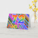 The front of this vibrant, fun, and eye-catching birthday greeting card design features a colourful stripes pattern, along with the message "72 years old!" having a multicolored rainbow like gradient pattern. The inside features a custom greeting message, or could perhaps be cleared and left blank if a message is to be written by hand instead. A greeting card like this could be a fun, happy way of sending a message to somebody who is celebrating their seventy second birthday. [~Z0000351]