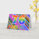 The front of this vibrant, exciting, and eye-catching birthday greeting card design features a colourful stripes pattern, along with the message "76 years old!" having a multicolored rainbow like gradient pattern. The inside features a customizable greeting message, or could perhaps be cleared and left blank if a message is to be written by hand instead. A greeting card like this might be used to send a message acknowledging somebody’s seventy sixth birthday. [~Z0000351]