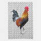 Colourful Strutting Rooster Kitchen Towel, featuring an image from a photo of a Key West Rooster (by ©sjasis) against a quatrefoil background.