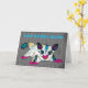 Create a personalized card for birthdays or any occasion with this folded greeting card that's ready to be customized with your own message on the front and the inside. This card features a modern style illustration of a sugar glider in bright colours: black, white, electric blue, magenta and yellow. The graphic is set against a distressed style grey background.