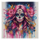 Colourful Sugar Skull lady done in blue, pink and orange.