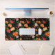 Colourful English garden summer flowers seamless pattern on a custom black background. Custom optional monogram.