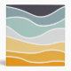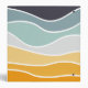 Abstract retro style summery illustration of colourful (yellow, blue, orange, navy blue, mustard, turquoise) waves decoration on white background