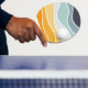 Abstract retro style summery illustration of colourful (yellow, blue, orange, navy blue, mustard, turquoise) waves decoration on white background