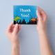 Thank you postcard flyer. Fresh and festive vibrant bright primary colours with halftone, cloud bursts and explosions, bam and pow! Powerful graphic Superhero for a fun boy's kids birthday party favour and decoration.