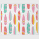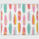 A vibrant and playful pattern featuring a variety of surfboards in bright shades of pink, yellow, teal, and red. The surfboards display different designs, including stripes and chevrons, giving the pattern a dynamic and fun feel. Arranged in a neat, alternating layout, the surfboards stand out against a clean white background, evoking the excitement of beach and surf culture.