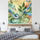 An intricate pattern of swirling colours and leaves, blending vibrant blues, greens, and earthy tones. Detailed botanical elements intertwine gracefully.