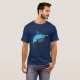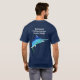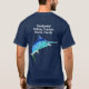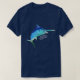 Fishing promo tee shirt, with graphics of a large colourful swordfish and white custom text. Personalize the text, on the front and back of the shirt, to read what you want. Great as advertising, souvenirs, and gifts.