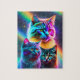 Belle Colorée 3 Petits Chats Mignons Avec Lumière Néon Et Couleurs Arc-En-Ciel Dans Un Monde D'Espace Imaginaire. Trois Chats Dans L'Espace Peinture Numérique 3D, Poster De Chats Colorés Pour Salle Enfants, Salle Bébé, Puzzle De Chats,