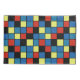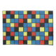 Colourful graphical pattern with tiles coloured blue, red and yellow.