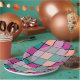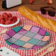 This design is based on graphical tiles in joyful colours, separated by black lines. It's general, but colourful, and can suit any occasion. The main area is covered with a semi transparent layer to make the part with food tidier, but you can remove this layer if you prefer full colour effect all over the plate. The semi transparent layer is good if you want to add text - it will make the text or logo stand out more.