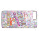 This is a fun and flirty iPhone 7 Plus Case with an illustrated sparkly pink, yellow, turquoise and purple background accented with colourful type that says, Time to Drink Champagne and Dance on the Table.
