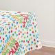 A bright colourful Christmas festive table cloth with dots and colourful text that reads 'tis the season to be jolly. Background colour can also be changed to suit the colours in your dining room, currently white. Ideal for colourful festive parties, children's tables and for those who like bright colour. Designed by Sarah Trett.