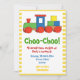 Colourful train kids birthday yellow, white border invitation