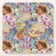 Colourful Travel Sticker Pattern Square Paper Coaster