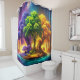 This shower curtain has a colourful tree design on it.