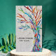 This unique business card is decorated with a print of a mosaic tree made of tiny pieces of brightly coloured glass.