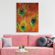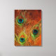 colourful trio peacock feathers wrapped canvas