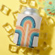 Retro style illustration with colourful (yellow, blue, orange, navy blue, beige, turquoise) arches decoration on beige background. You can add your name/monogram to personalize the item.