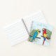Capture your thoughts and adventures in this cute and trendy beach notebook featuring a delightful blend of fun, stylish typography and vibrant colourful watercolor birds. The simple yet unique jungle-inspired design showcases elegant, chic parrots surrounded by lush botanical green leaves, palm trees, and a serene coastal seaside tropics aesthetic. Whimsical typography script paired with a touch of classic calligraphy style adds a timeless charm to this must-have notebook. Perfect for journalling, sketching, or planning your next tropical escape!