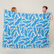 Colourful Tropical Blue Leaves Doodle Fleece Blanket