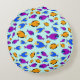 Colourful Tropical Fish Pattern in Blue Sea Round Pillow