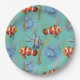 Paper party plates feature Colourful tropical fish pattern includes clown fish and underwater sea plants on light aqua background
